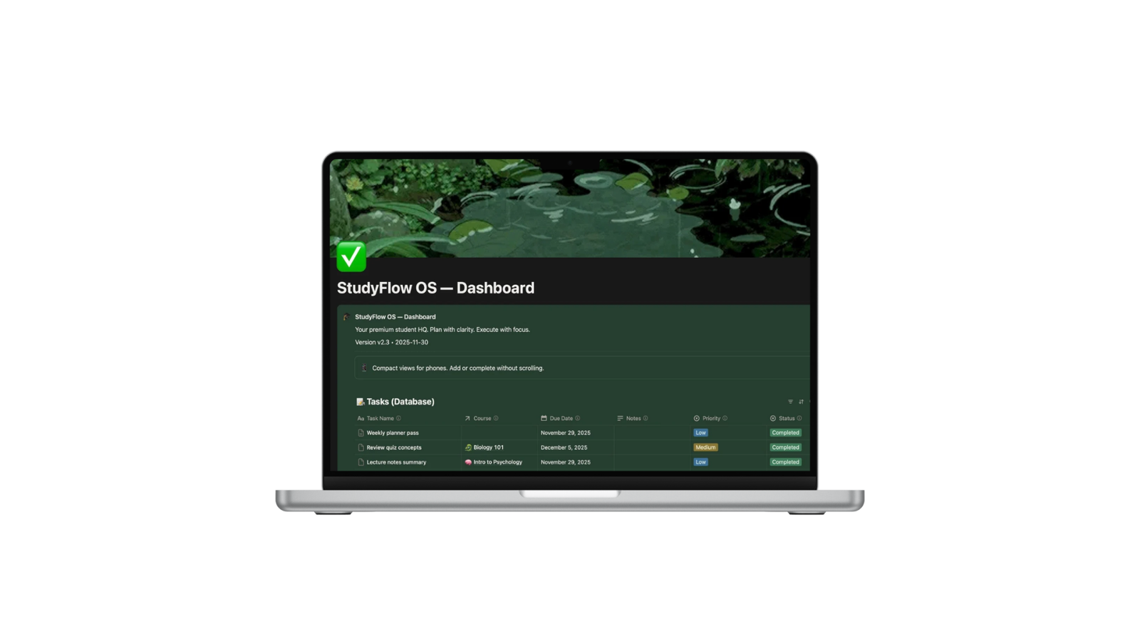 StudyFlow OS — Your Notion HQ for classes, tasks & exams
